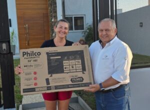 Nesta quinta-feira, 05 de fevereiro, a associada Luisa Caroline B. Arsenberg – EBSERH/HUSM, recebeu das mãos do Presidente da APERS, Roberval Bresolin, que também é sócio-Diretor da Rede Centrosul Corretora de Seguros, uma TV 32 polegadas. Luisa, ganhou através do sorteio entre os 30 novos associados, por ter ingressado na Associação e na Campanha 2025.